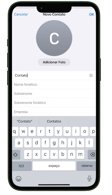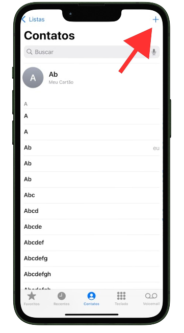 - Toque no botão para adicionar um novo contato: