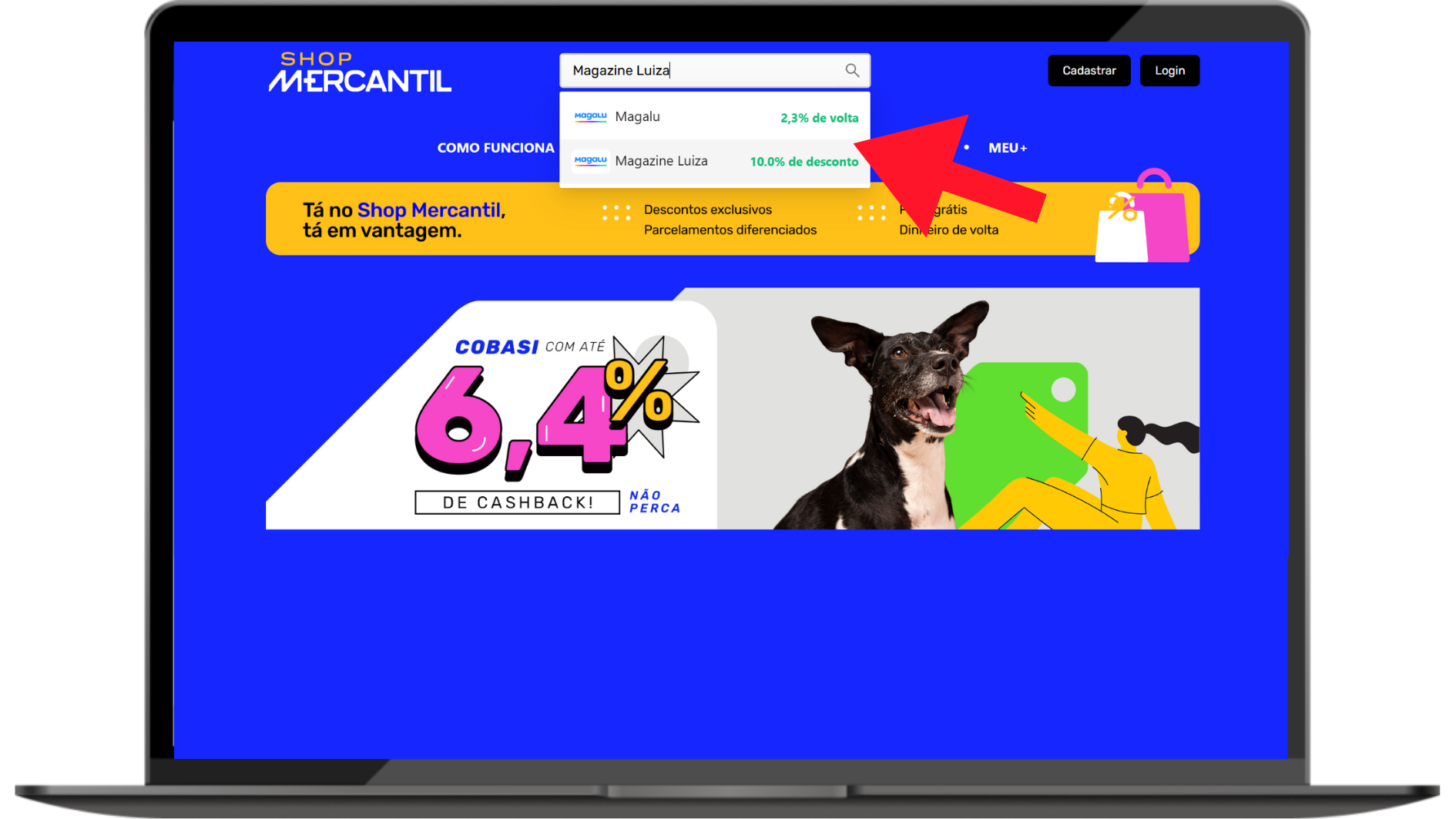 Uma plataforma exclusiva para clientes do Banco Mercantil, onde você faz compras em lojas parceiras com desconto e ainda pode receber uma parte do seu dinheiro de volta.