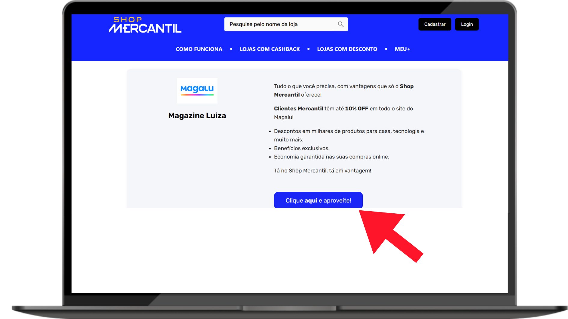 - Acesse o site oficial: Visite o Shop Mercantil para explorar as ofertas disponíveis. Lá, você encontrará uma lista de lojas parceiras que oferecem descontos, como Magazine Luiza, Casas Bahia e Netshoes com descontos variados.