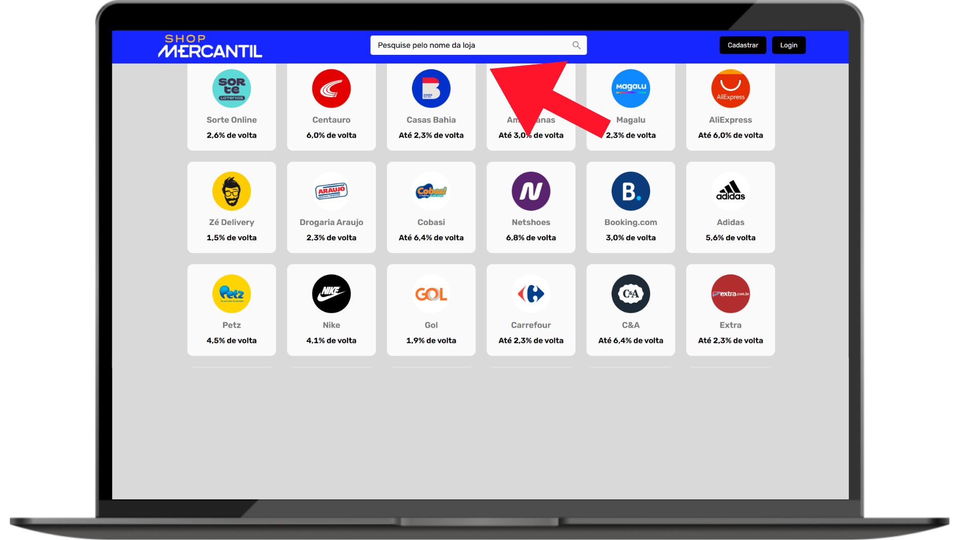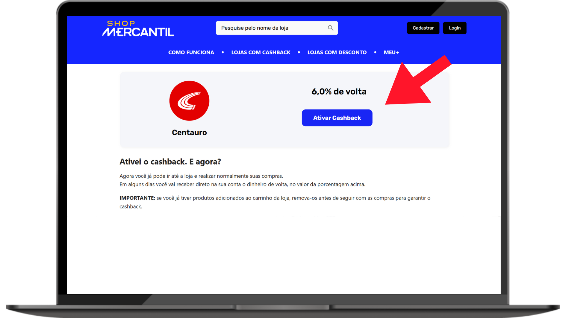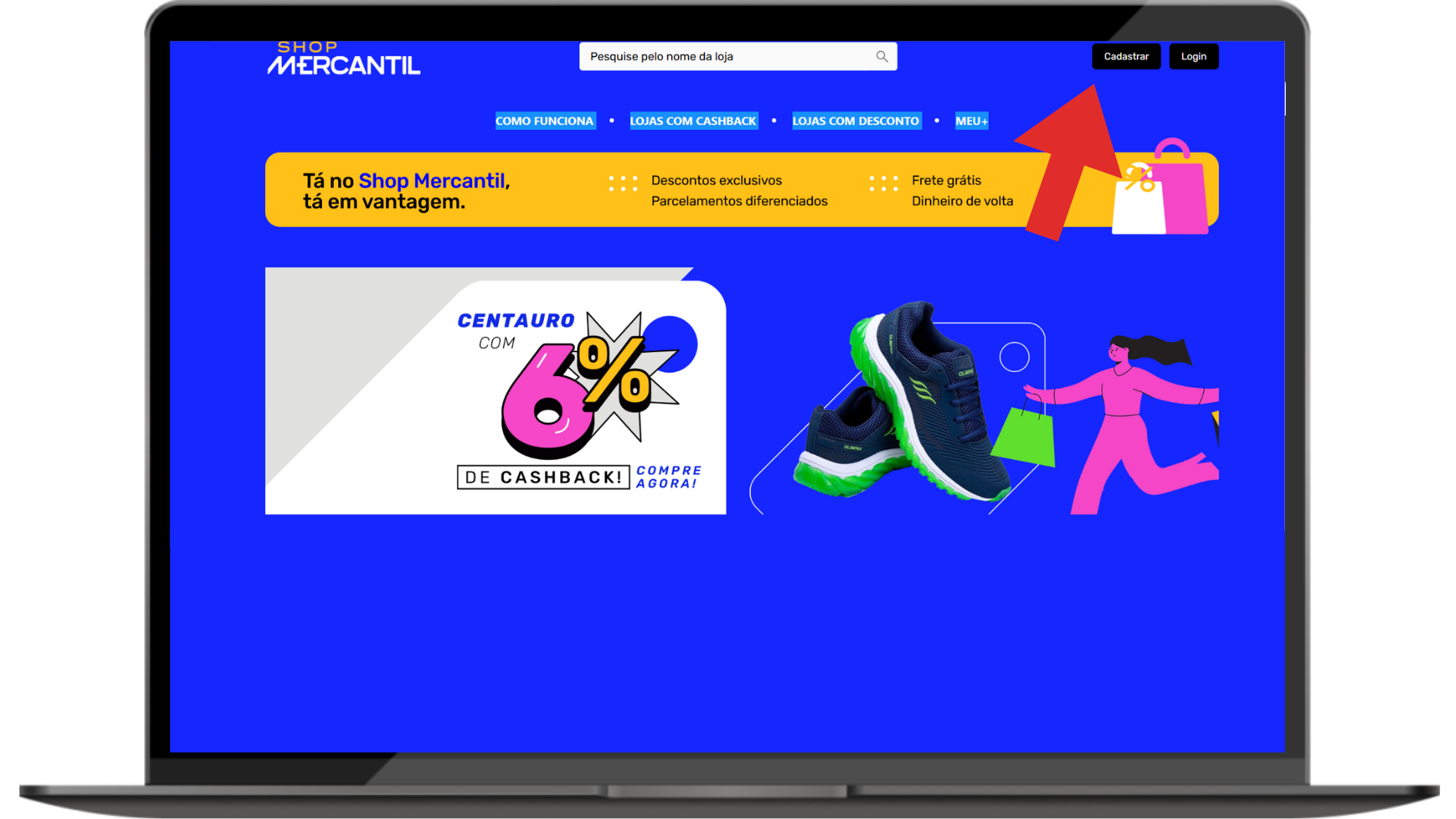 1 - Acesse o link shopmercantil.com.br e clique em cadastrar: