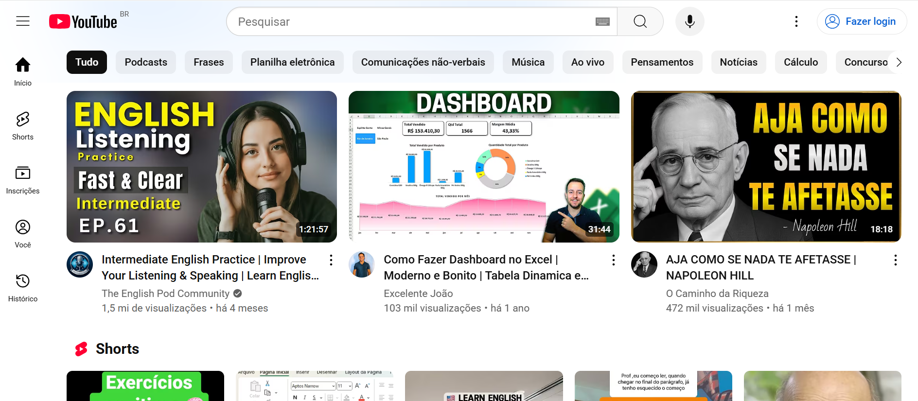 - Passo 1: Na tela inicial do YouTube, você verá vídeos sugeridos baseados nos seus interesses.