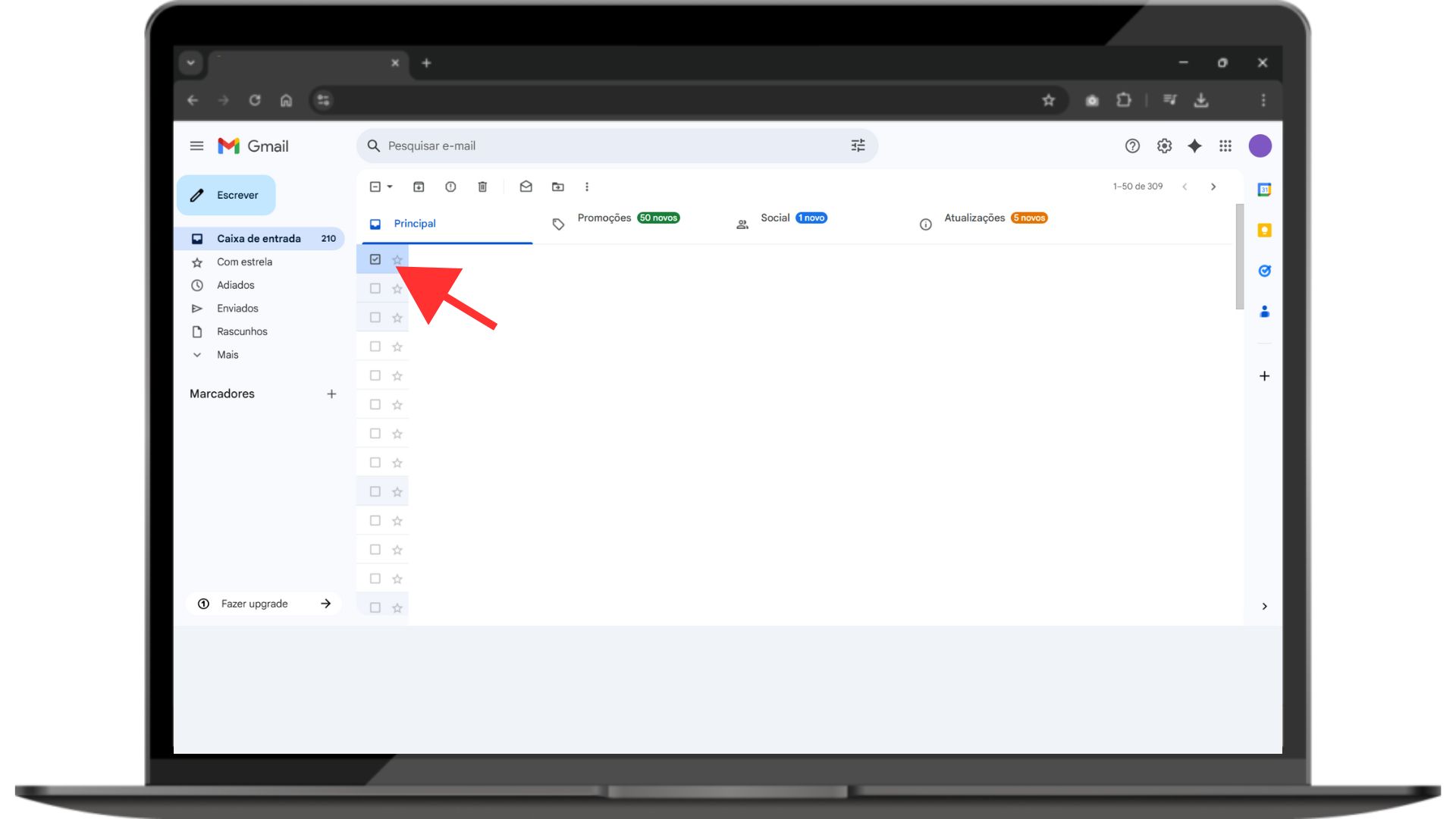 - Selecione o e-mail: Na lista de e-mails da caixa de entrada, toque ou clique no quadradinho ao lado dos e-mails que você deseja excluir.