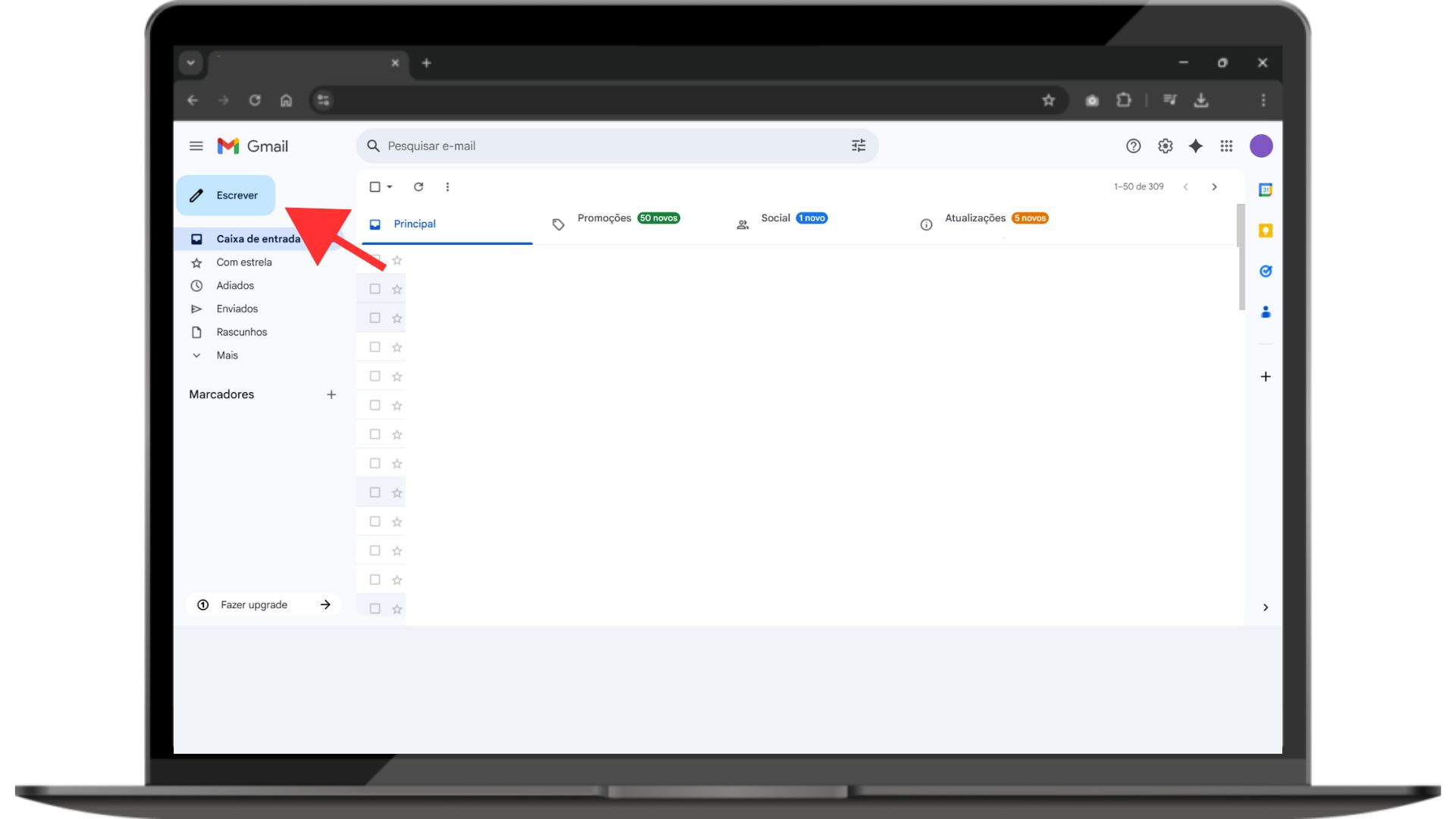 - Clique em "Escrever": Na página principal do Gmail, clique no botão "Escrever" no canto esquerdo.