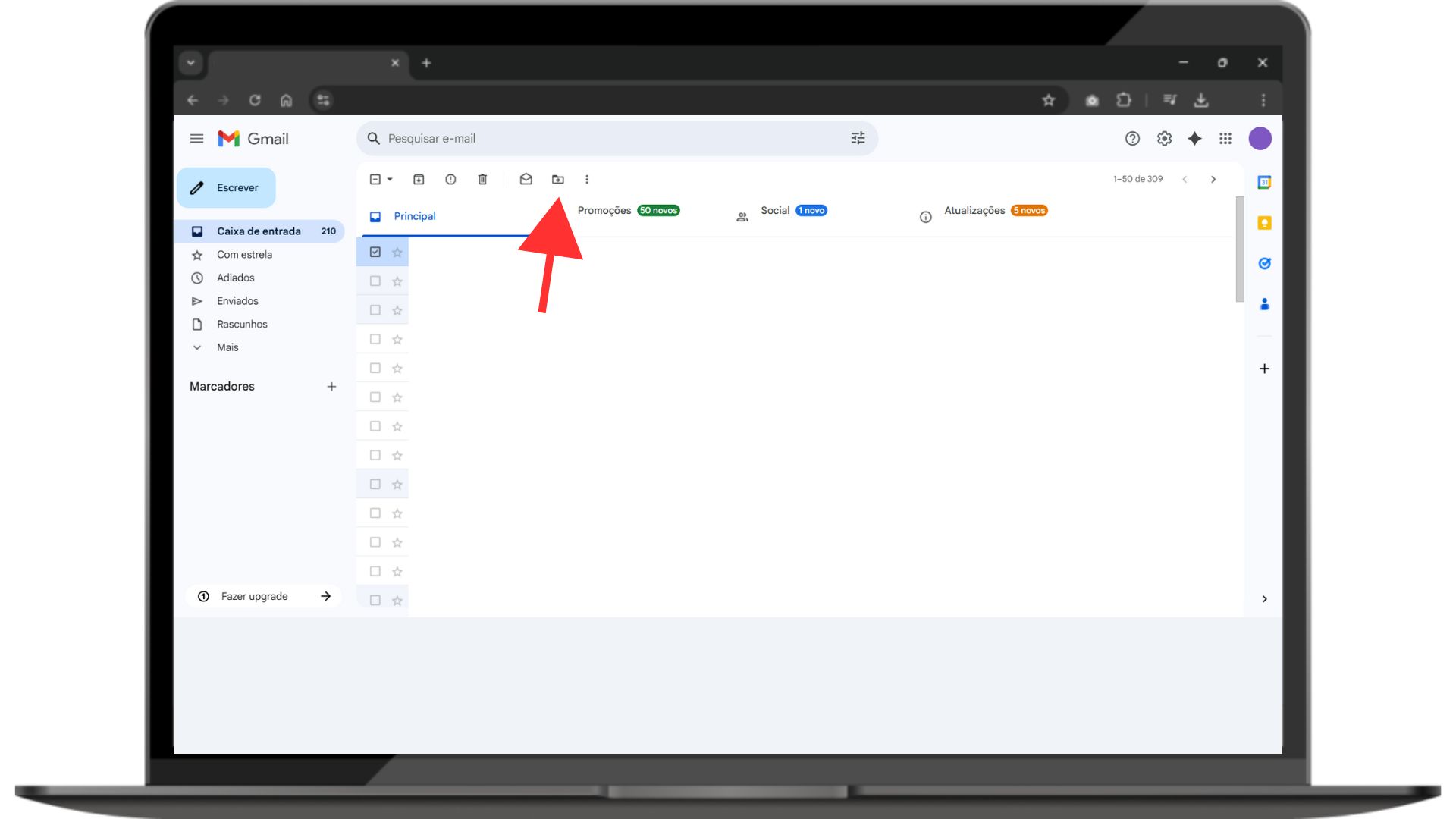 - Mover e-mails para marcadores: Selecione os e-mails que você deseja organizar e clique no ícone de "Marcadores" para movê-los para a pasta correspondente.
