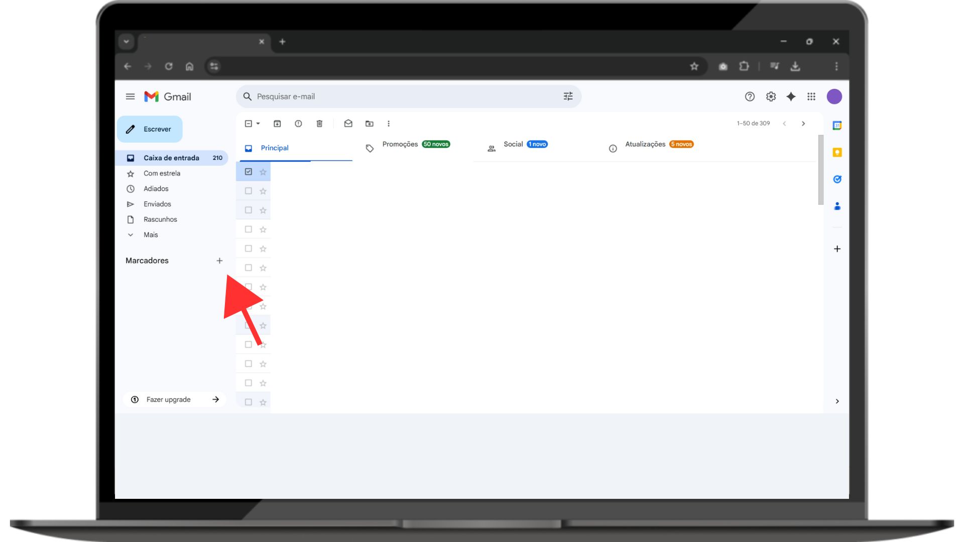 - Criar um marcador: No lado esquerdo do Gmail, vá até onde diz "Marcadores" e clique em "Criar novo marcador". Você pode dar nomes como "Trabalho", "Família", etc.