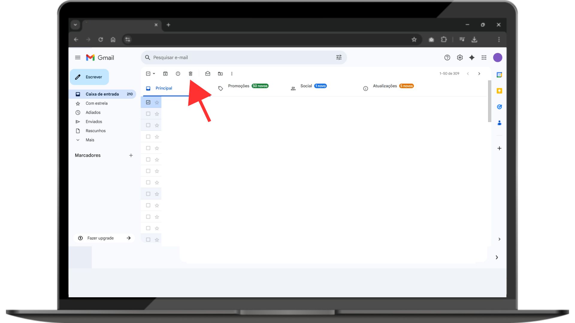 - Clique na lixeira: Depois de selecionar, clique no ícone da lixeira para apagar os e-mails.