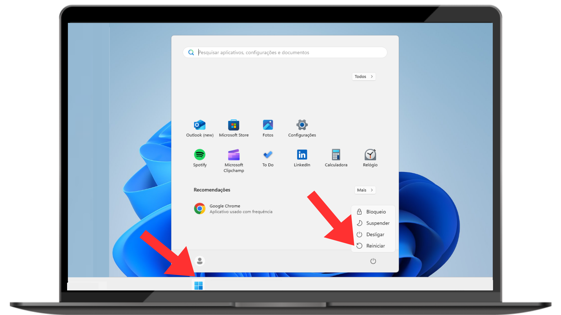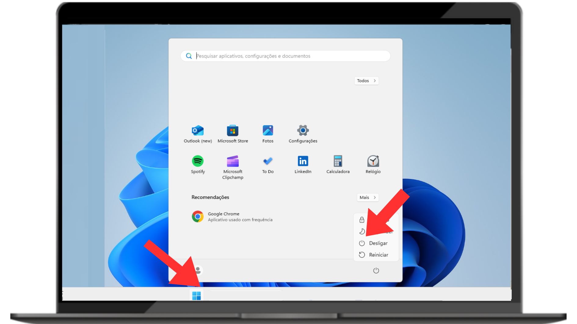 - Clique no menu Iniciar (ícone do Windows no canto inferior esquerdo da tela).