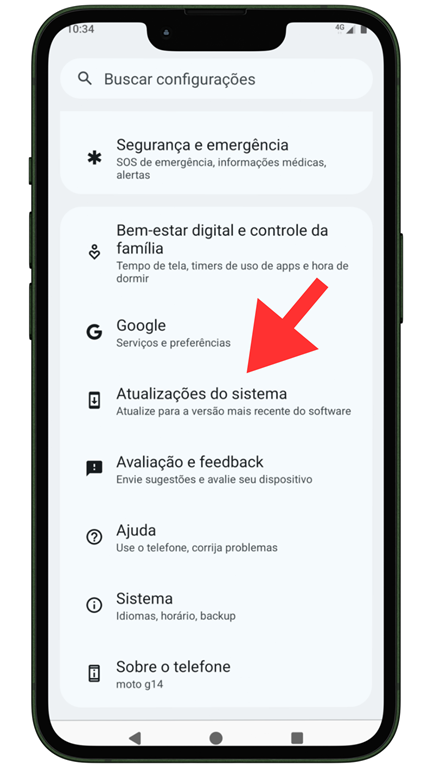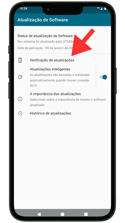 Em "Configurações", procure por "Atualizações" e certifique-se de que tudo está atualizado.