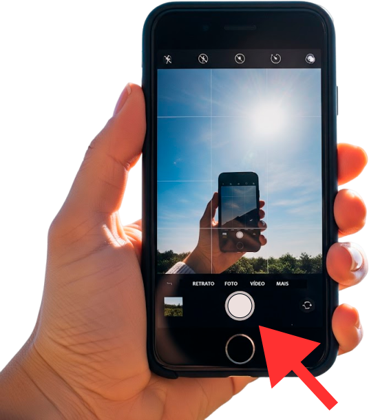 * Quando estiver pronto, toque no botão grande, redondo e branco que aparece na parte inferior da tela. Isso tirará a foto.