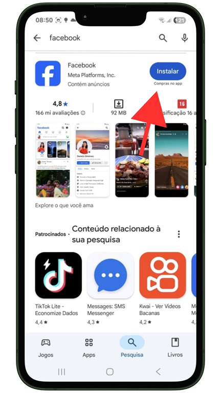 - Passo 1: Abra o navegador do celular ou baixe o aplicativo Facebook na Play Store (Android) ou App Store (iPhone).