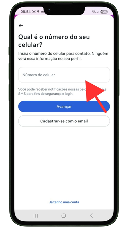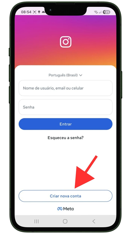 - Passo 2: Ao abrir o aplicativo, toque em "Criar nova conta".